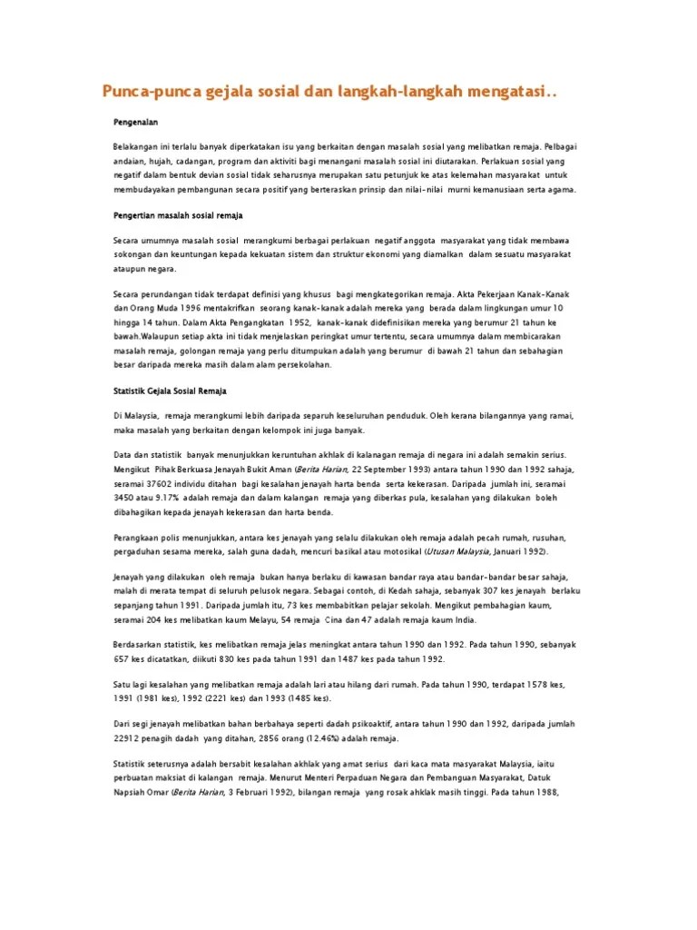 Naib pengerusi kanan yayasan pencegahan jenayah malaysia (mcpf), tan sri lee lam thye, berkata statistik tangkapan pelajar dalam jenayah . Psz 19:16(pind.1/97) universiti teknologi malaysia borang pengesahan status tesis judul : Kebiasaan itu bagi membendung gejala ponteng di kalangan pelajar sekolah . Kajian masalah gejala lepak remaja di kawasan felda. Hal ini menyebabkan remaja terlibat dengan rokok, pergaulan bebas, lepak, mat rempit, dadah dan sebagainya.